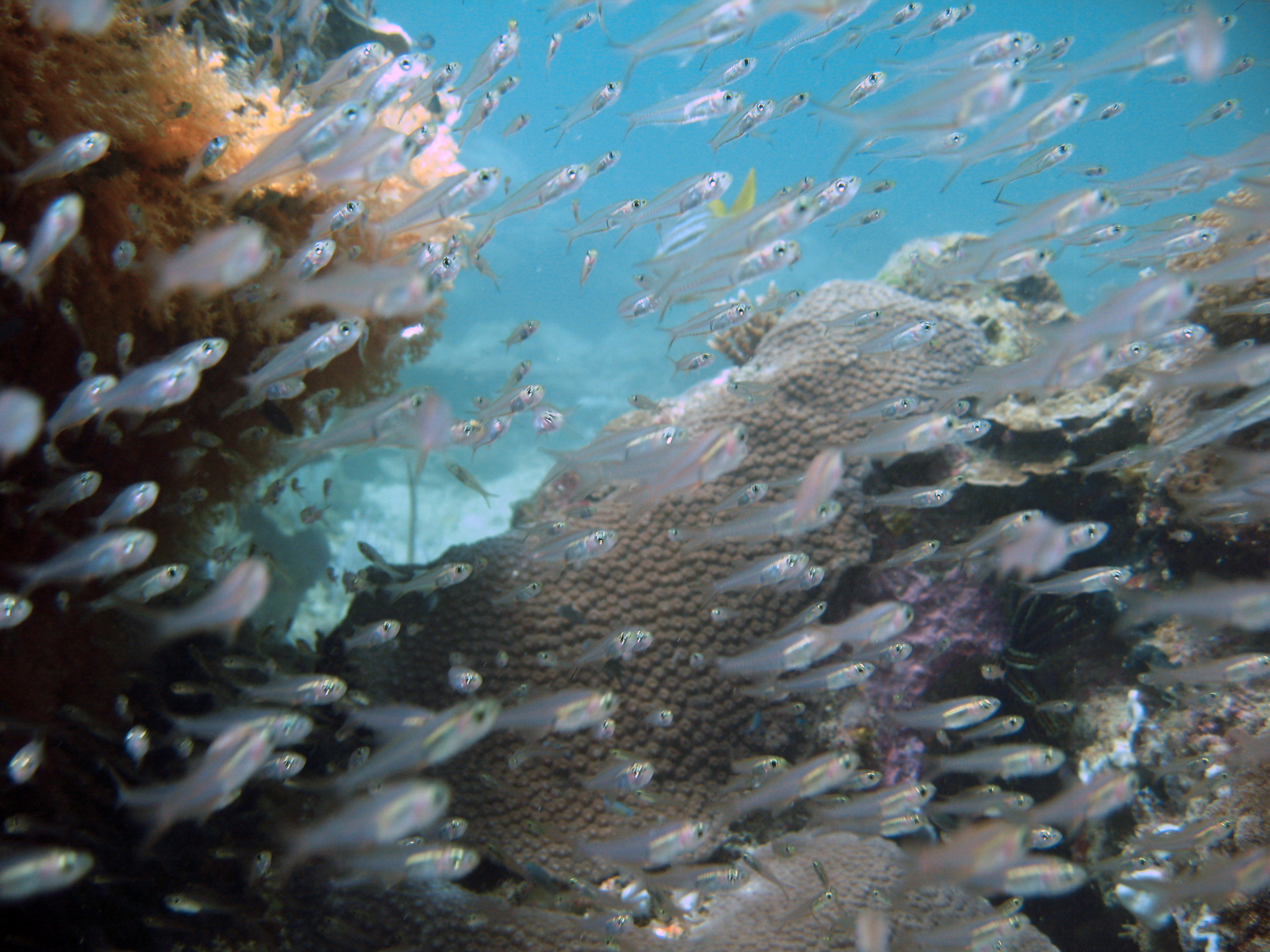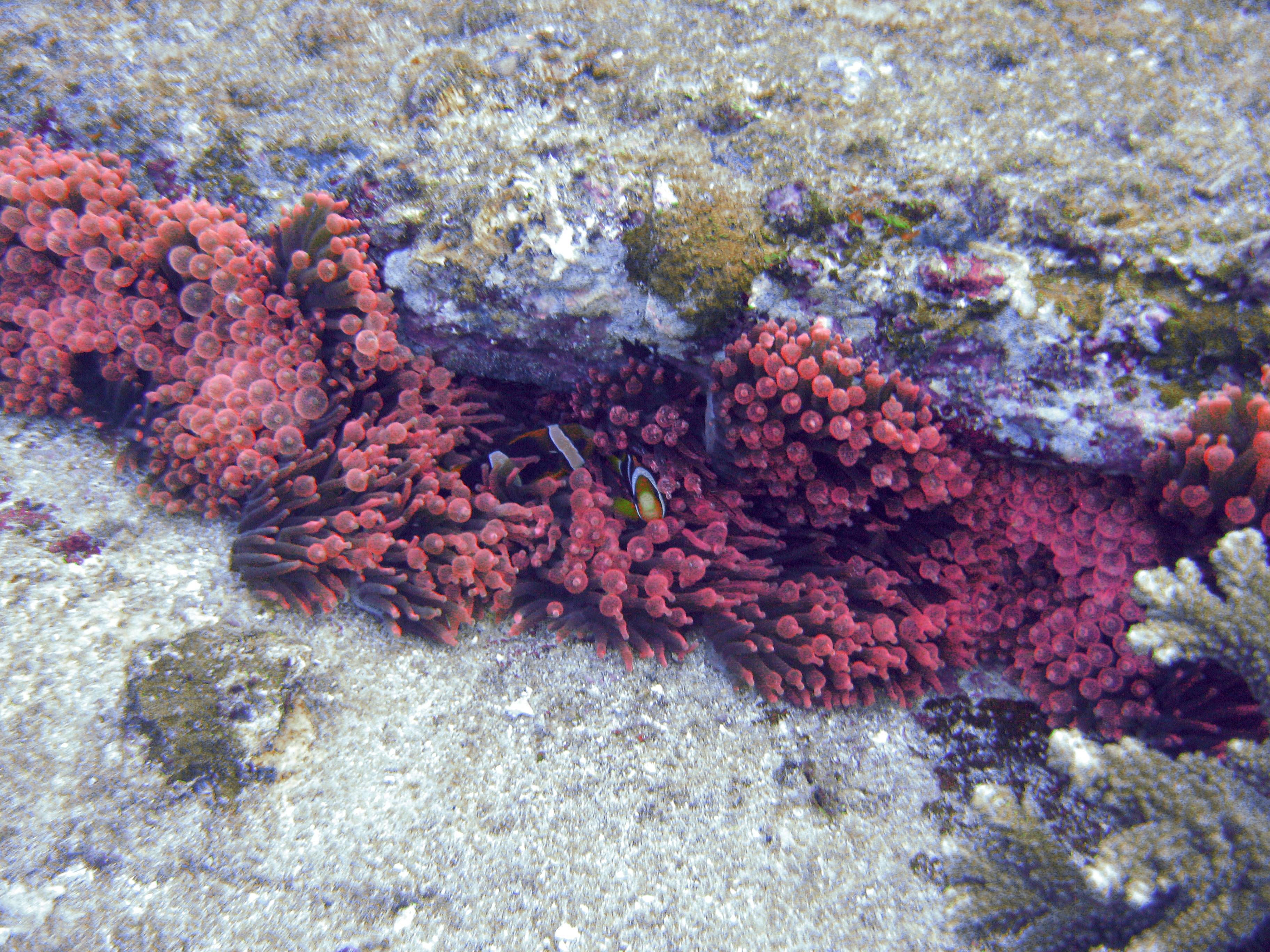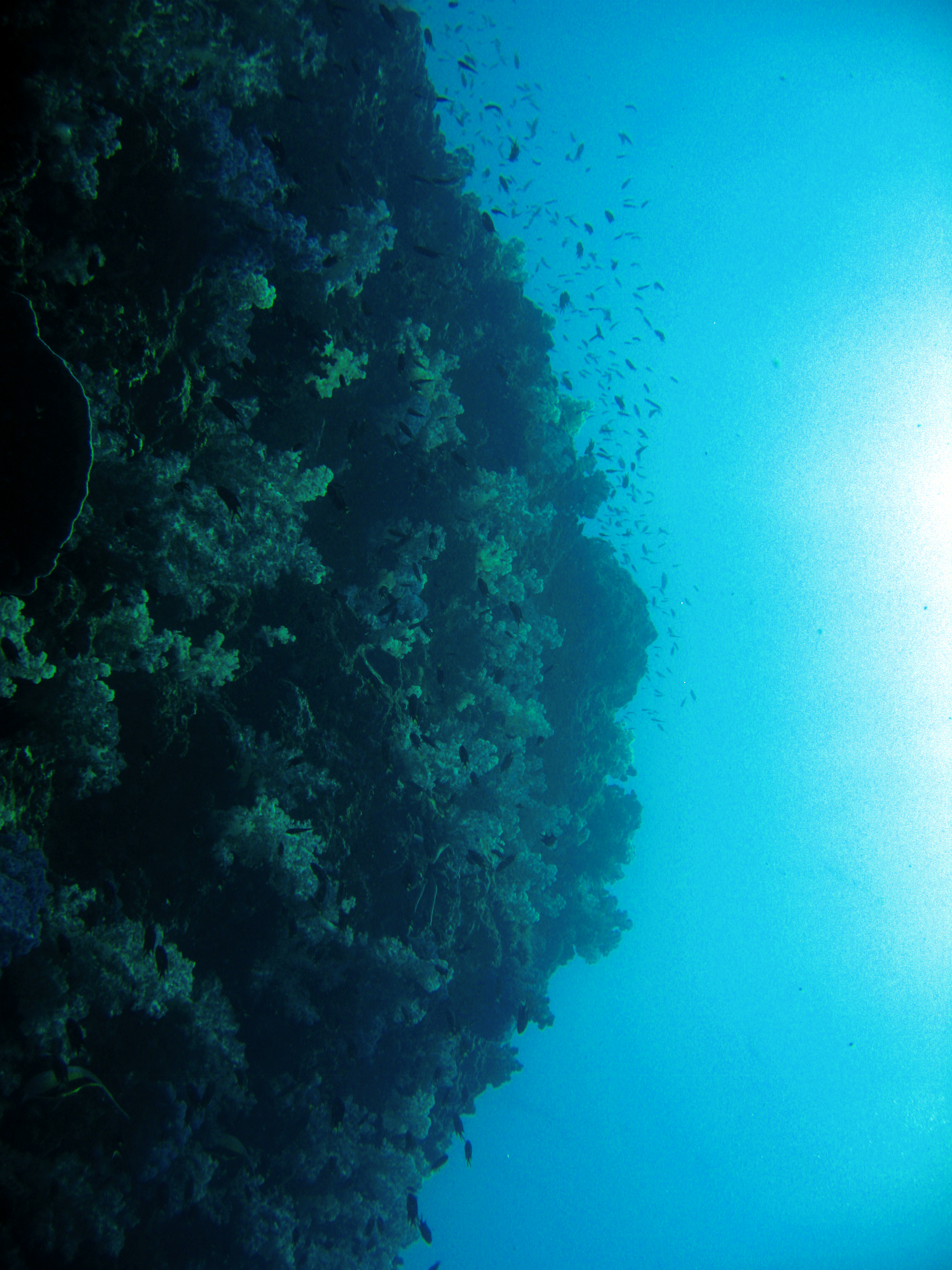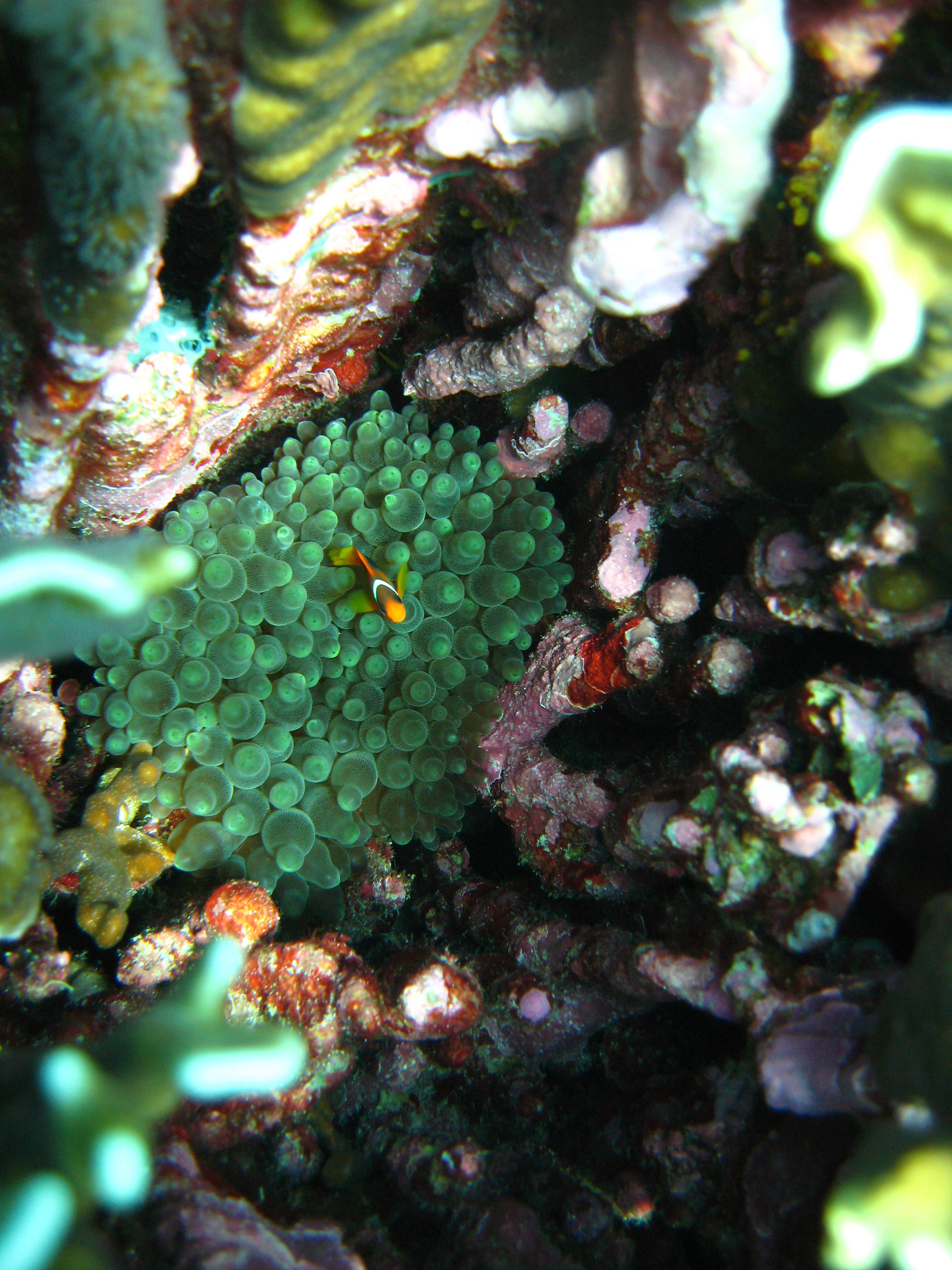 When underwater, if you turn round or look into the blue you will see other animals coming to look at you, from the biggest creatures, the inquisitive and friendly, or the tiny, like the pugnacious damsel or clown fish who will defend their territory against even the biggest animals.
