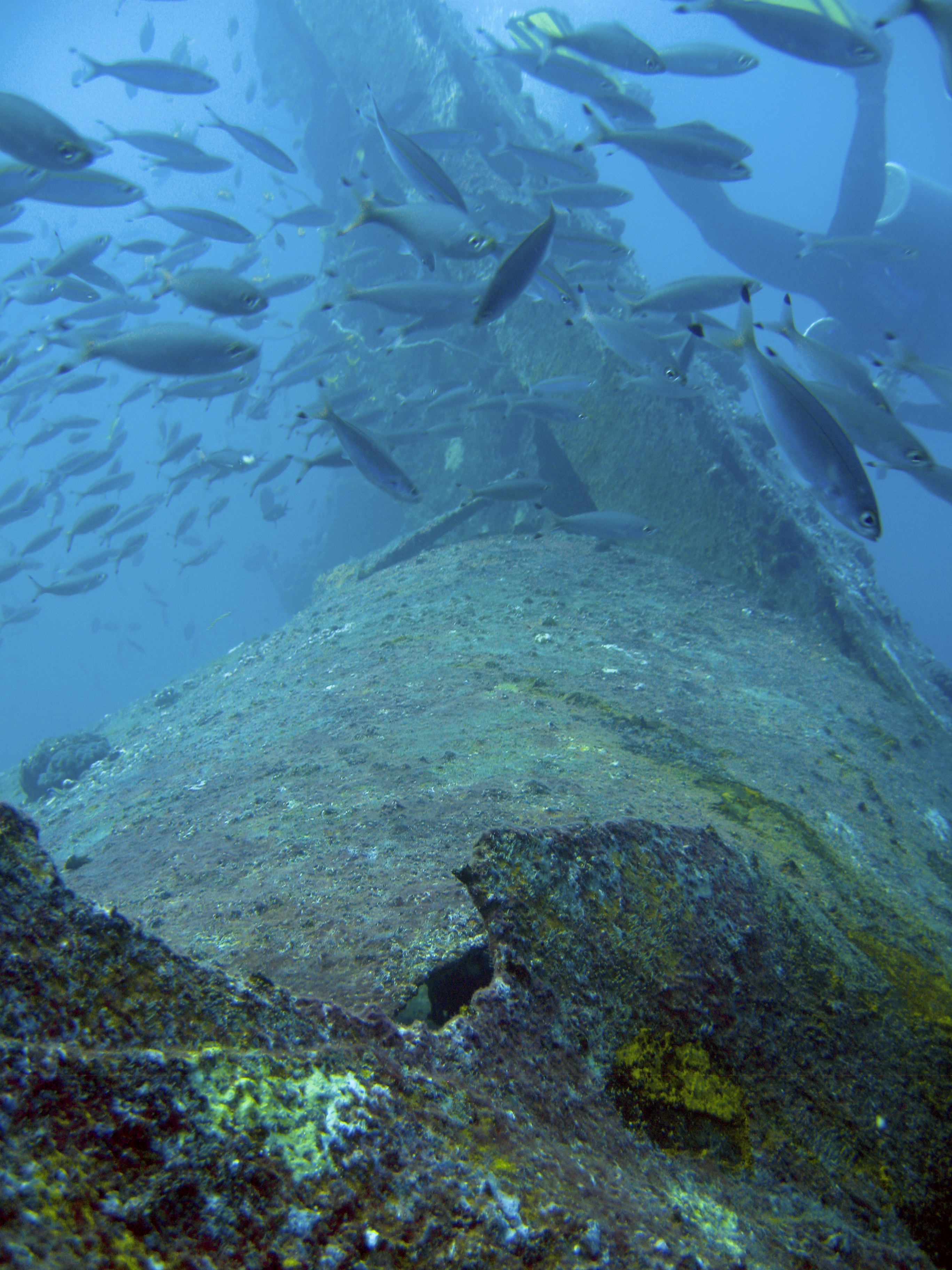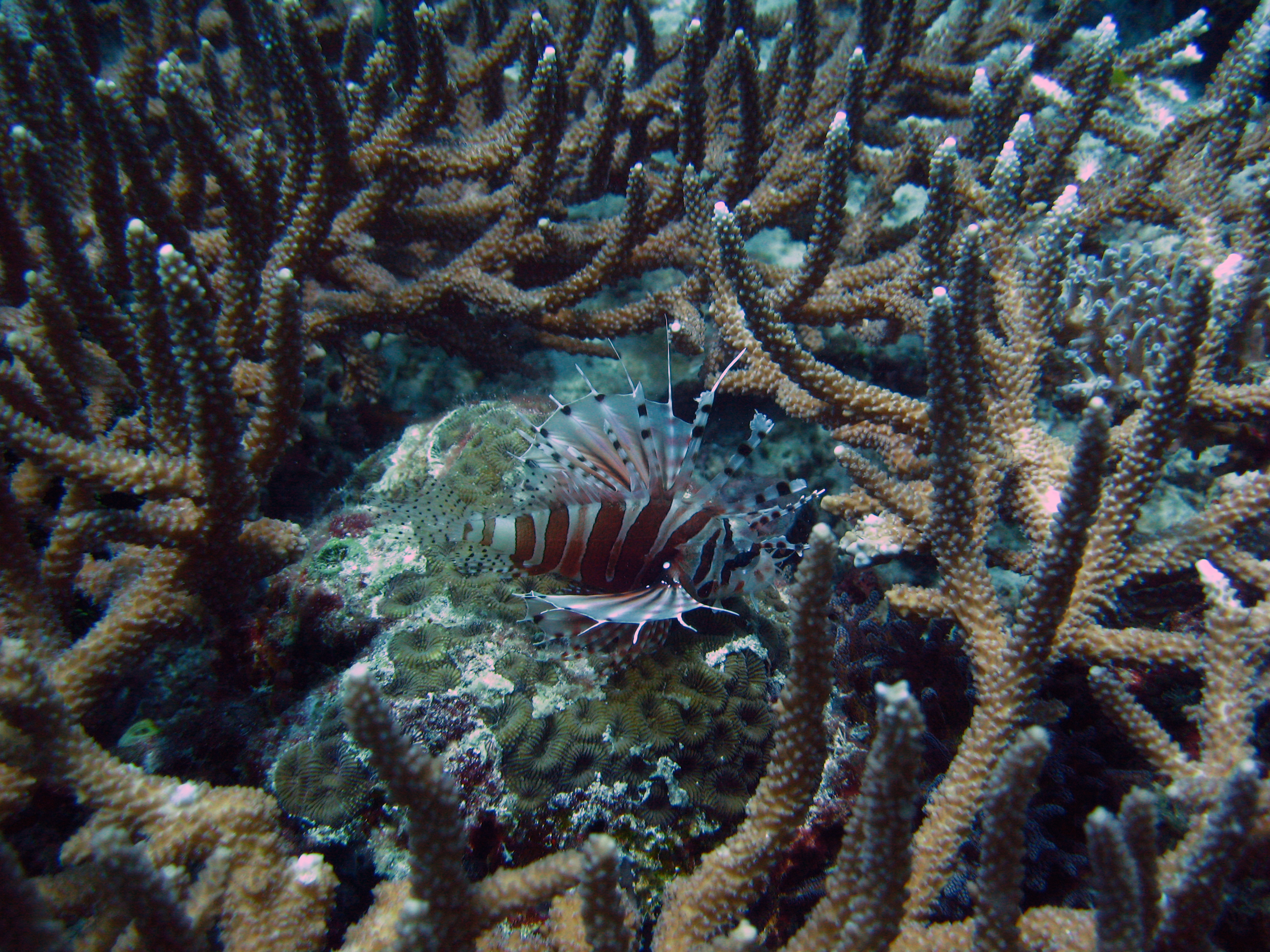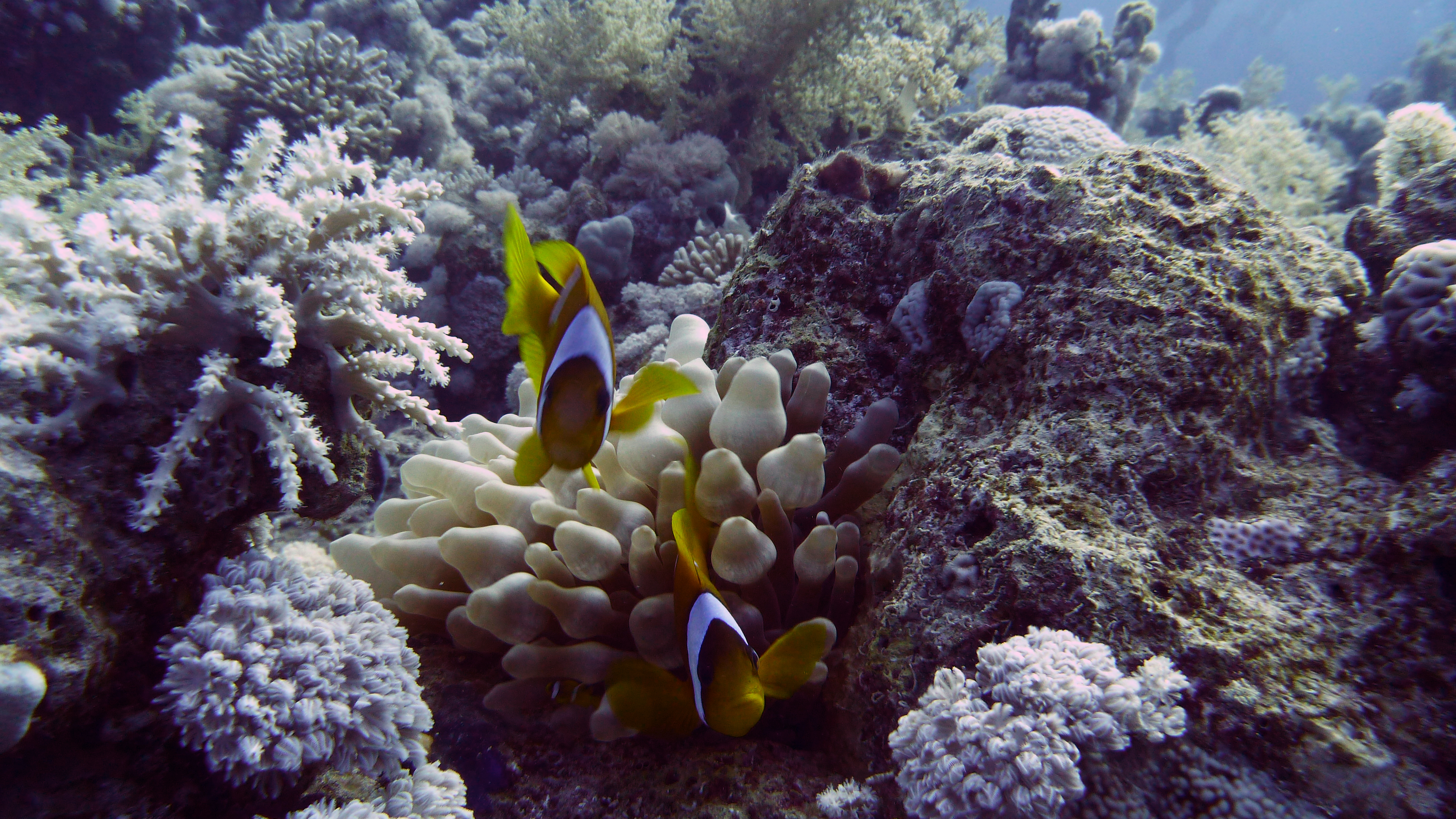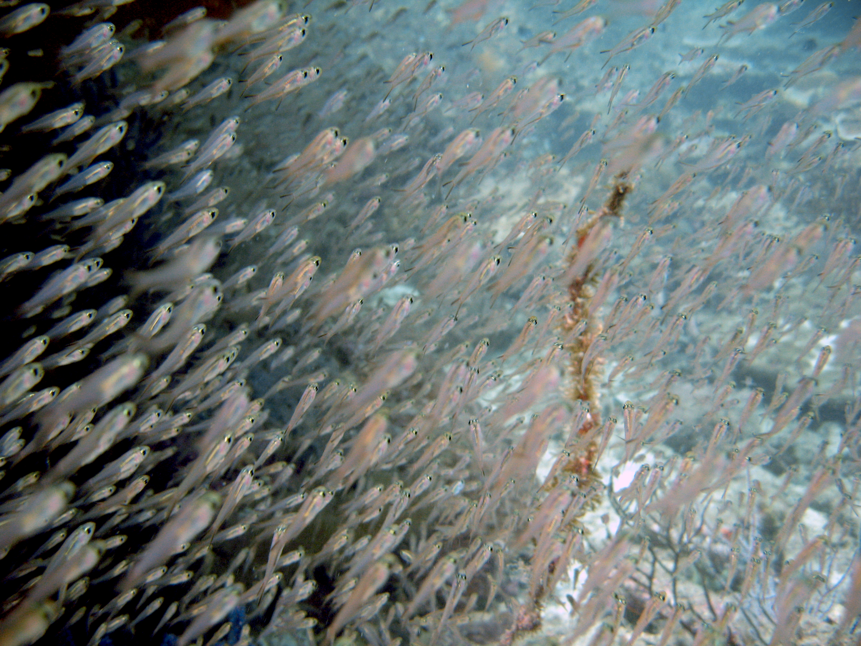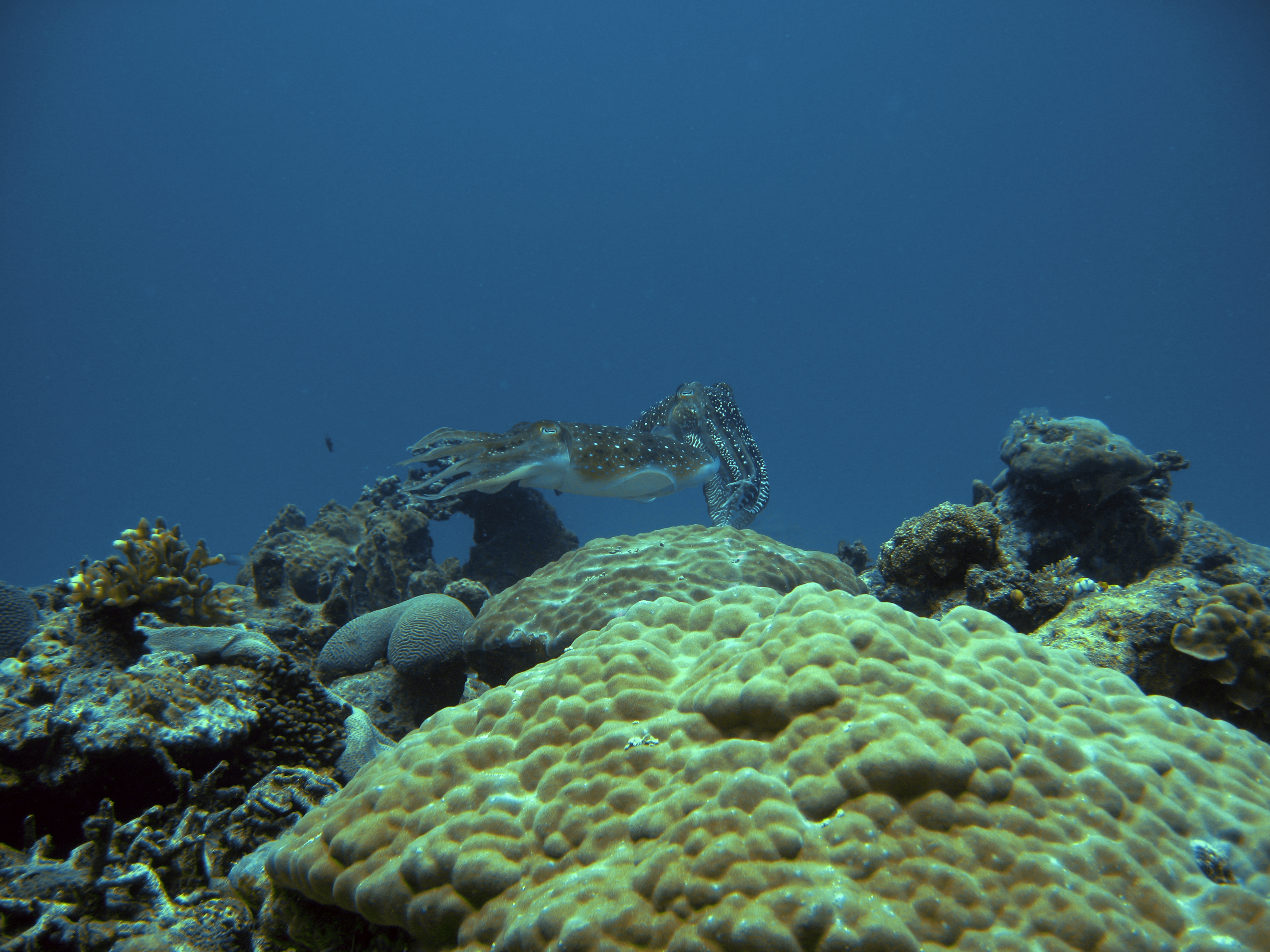 When underwater, if you turn round or look into the blue you will see other animals coming to look at you, from the biggest creatures, the inquisitive and friendly, or the tiny, like the pugnacious damsel or clown fish who will defend their territory against even the biggest animals.